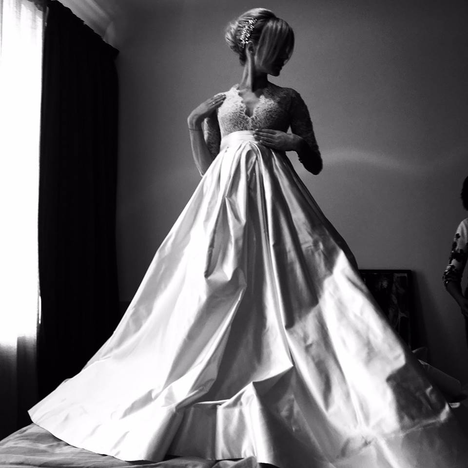 Kad Edgars mani bildināja, vēl pat nenojautu, ka esmu stāvoklī. Par mazuli uzzinājām pāris mēnešus vēlāk, kas pilnībā mainīja mūsu sākotnējos plānus, jo pa šo laiku jau biju izplānojusi gan savu kāzu kleitu, gan ceļojumu uz Peru. Sākumā mums pat bija doma, ka kāzas jārīko pēc mazā dzimšanas, lai varētu uzvilkt plānoto kāzu kleitu un nesteidzīgi visu izplānot, bet tagad esam ļoti priecīgi, ka apprecējāmies pirms bērniņa dzimšanas. Mūsu kāzas bija ideālas! Tieši tādas, kā vēlējāmies un gaidāmais bērniņš neradīja nekādus šķēršļus – tieši pretēji – viņš mūs padarīja dubultā laimīgus. Es jutos piepildīta un mierīga. Kā saka – cilvēks plāno, bet Dievs dara. Arī kāzu kleita bija tieši tāda, kā es vēlējos, lai arī sākotnēji biju to izplānojusi pilnīgi citādāku,” stāsta Katrīna.