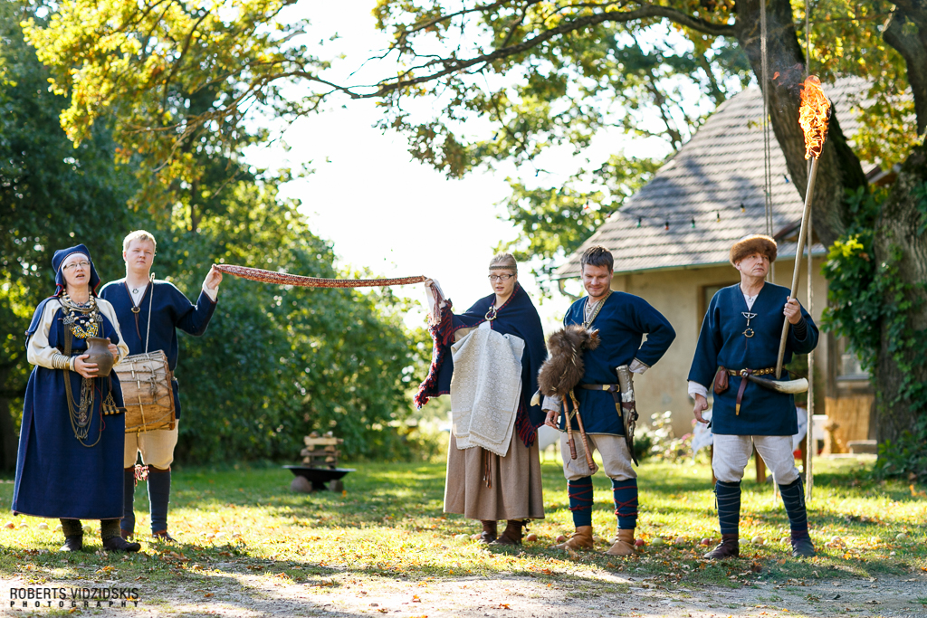 Ineses Krūmiņas (līdzināšana, kāzu vadīšana), Antras Skuteles (mičošana), Jāņa un Ievas Kušķiem (latvisko rituālu vadītāji), kā arī Latvijas Dievturu sadraudzē, kas pārzina ne vien vedības, bet arī citus latviešu godus.