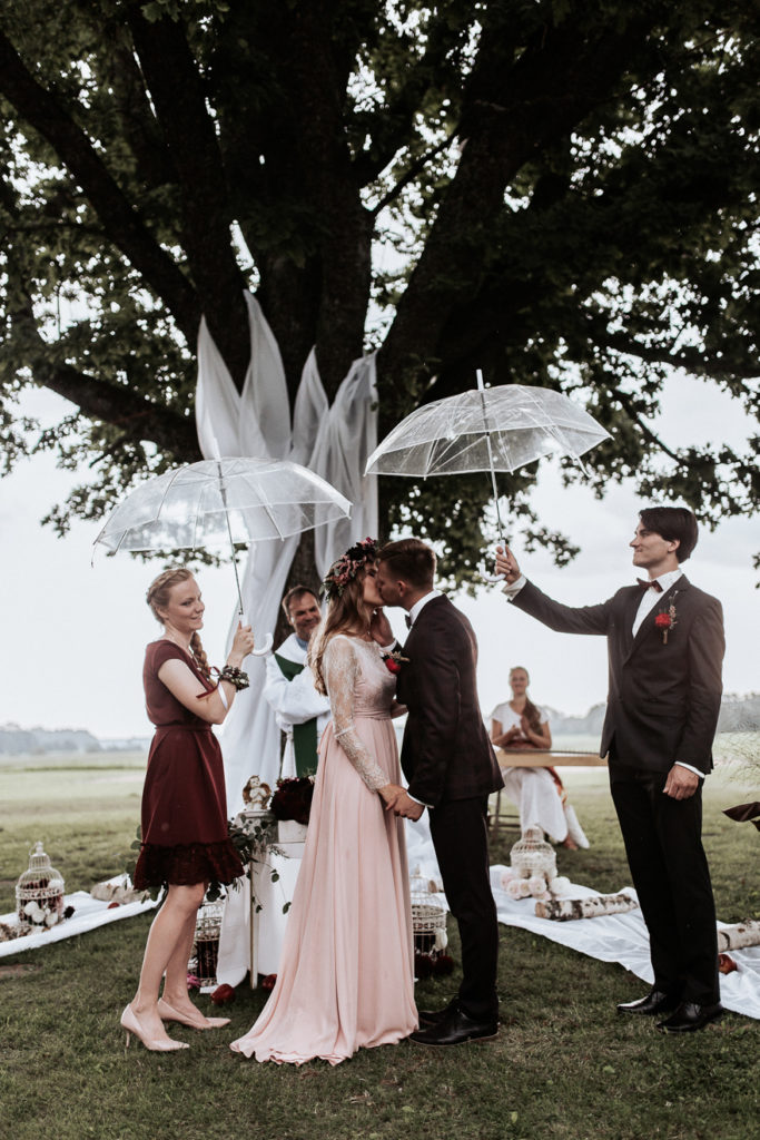 Ja kāzu diena ir apmākusies un brīžiem sola nelielu lietu, tad nevajag satraukties – tas kāzu dienu pavisam noteikti nevar sabojāt.